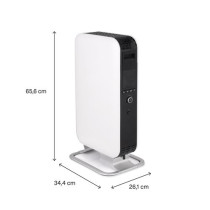 Grâce à sa puissance de 1500 Watts et à son ventilateur intégré, l’appareil diffuse une chaleur homogène et rapide. Son thermostat électronique vous permet de choisir entre trois niveaux d’intensité : 600 W, 900 W et 1500 W.